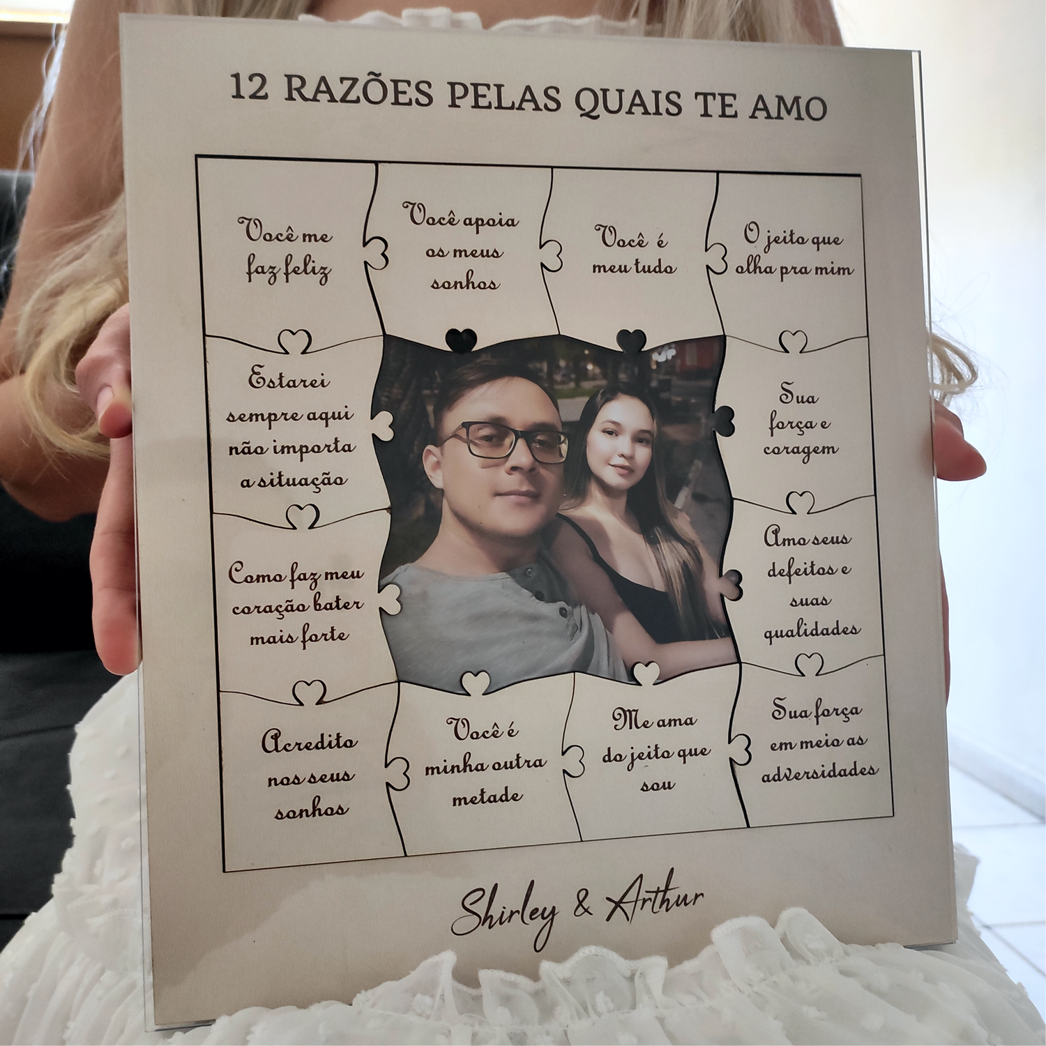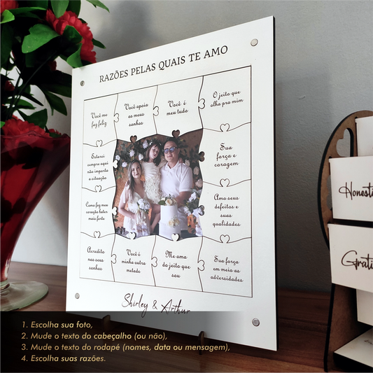Quadro com 12 Mensagens em forma de Puzzle Branco