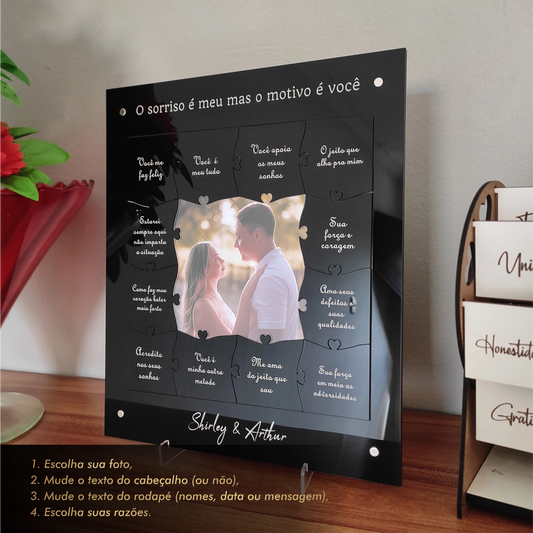 Quadro com 12 Mensagens em forma de Puzzle Preto