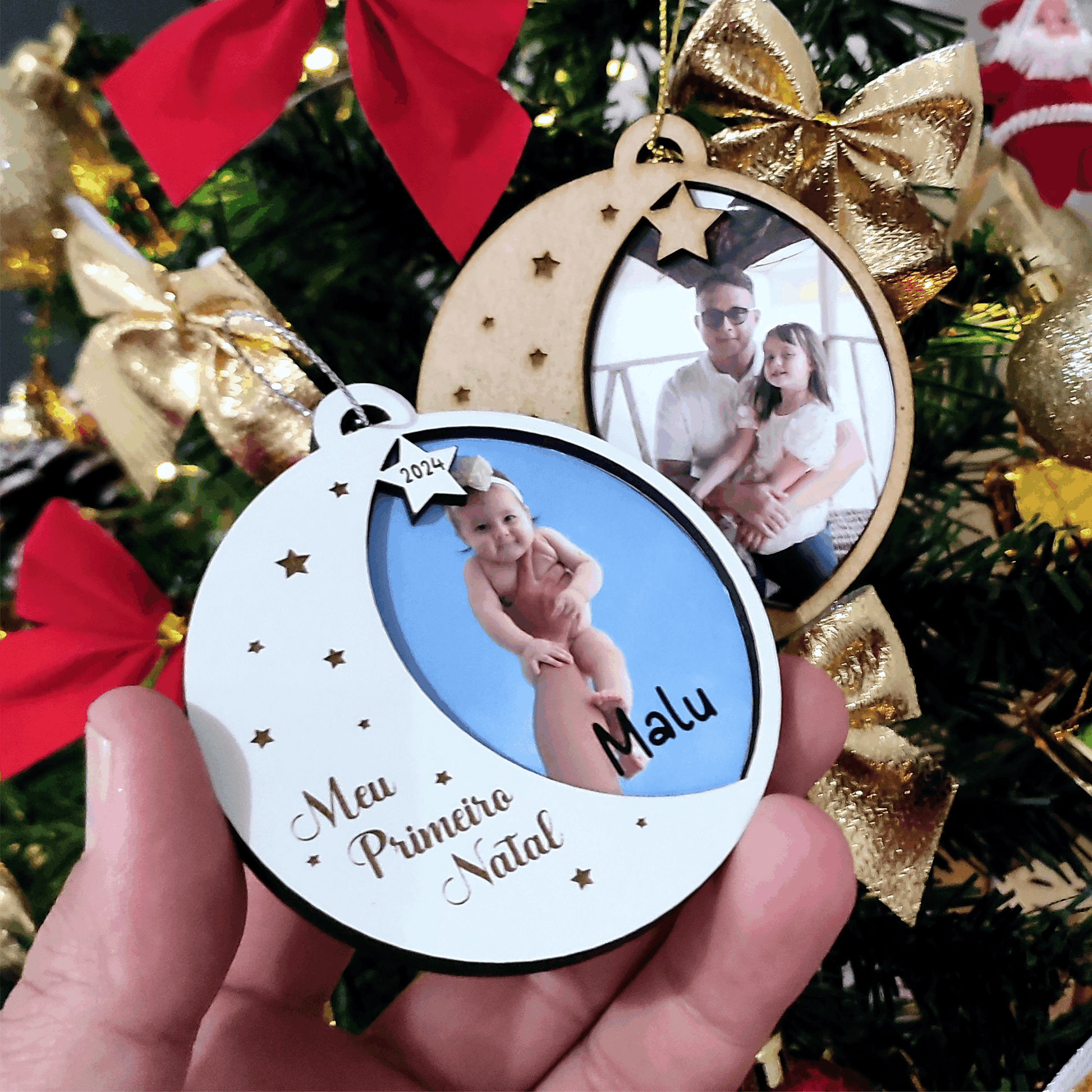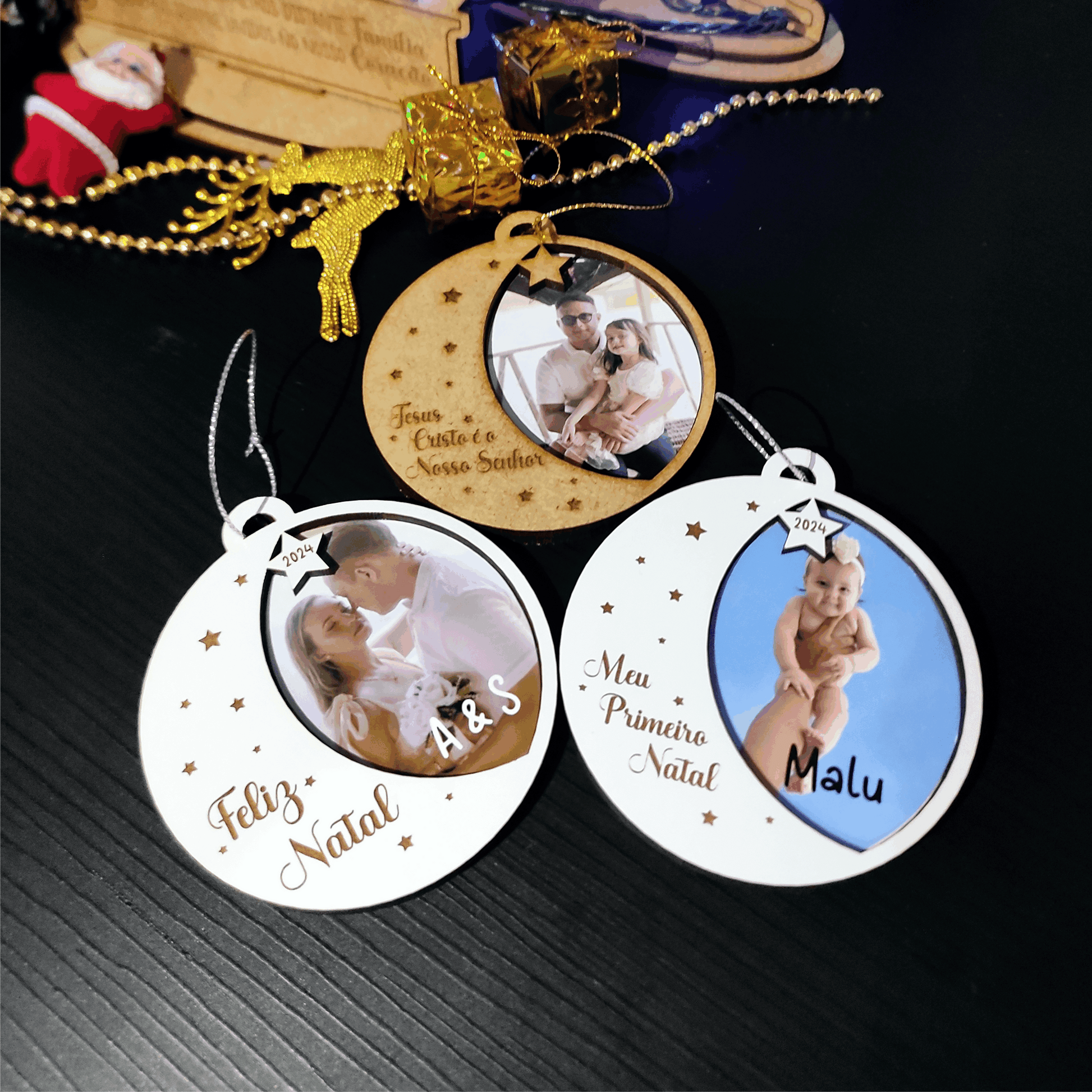 1x Pingente para Árvore de Natal com Fotos + barbante para pendurar.