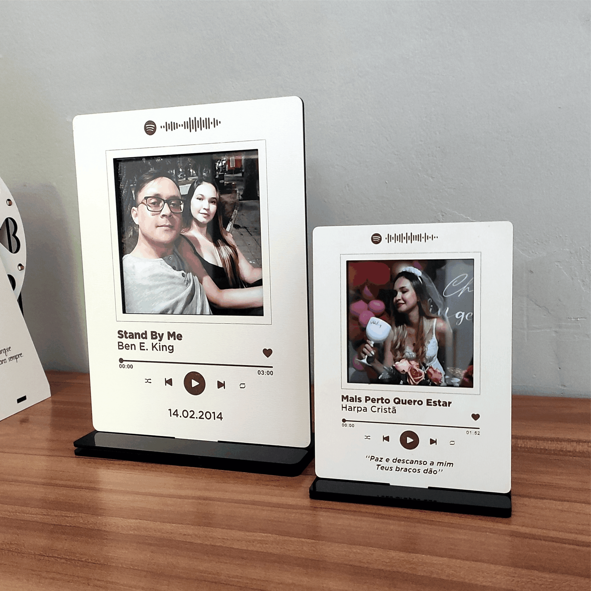 Celebre momentos especiais com nossa Placa Personalizada com Foto e Música. Feita com bordas arredondadas e disponível em dois tamanhos, esta placa é uma maneira única de capturar memórias preciosas. Personalize com até 3 fotos, o título e o artista de uma música especial, uma mensagem personalizada e o código do Spotify para reproduzir a música. Com a base em acrílico, esta placa é perfeita para exibir em qualquer ambiente. Experimente nossa ferramenta de personalização para visualizar sua placa antes de fazer o seu pedido.