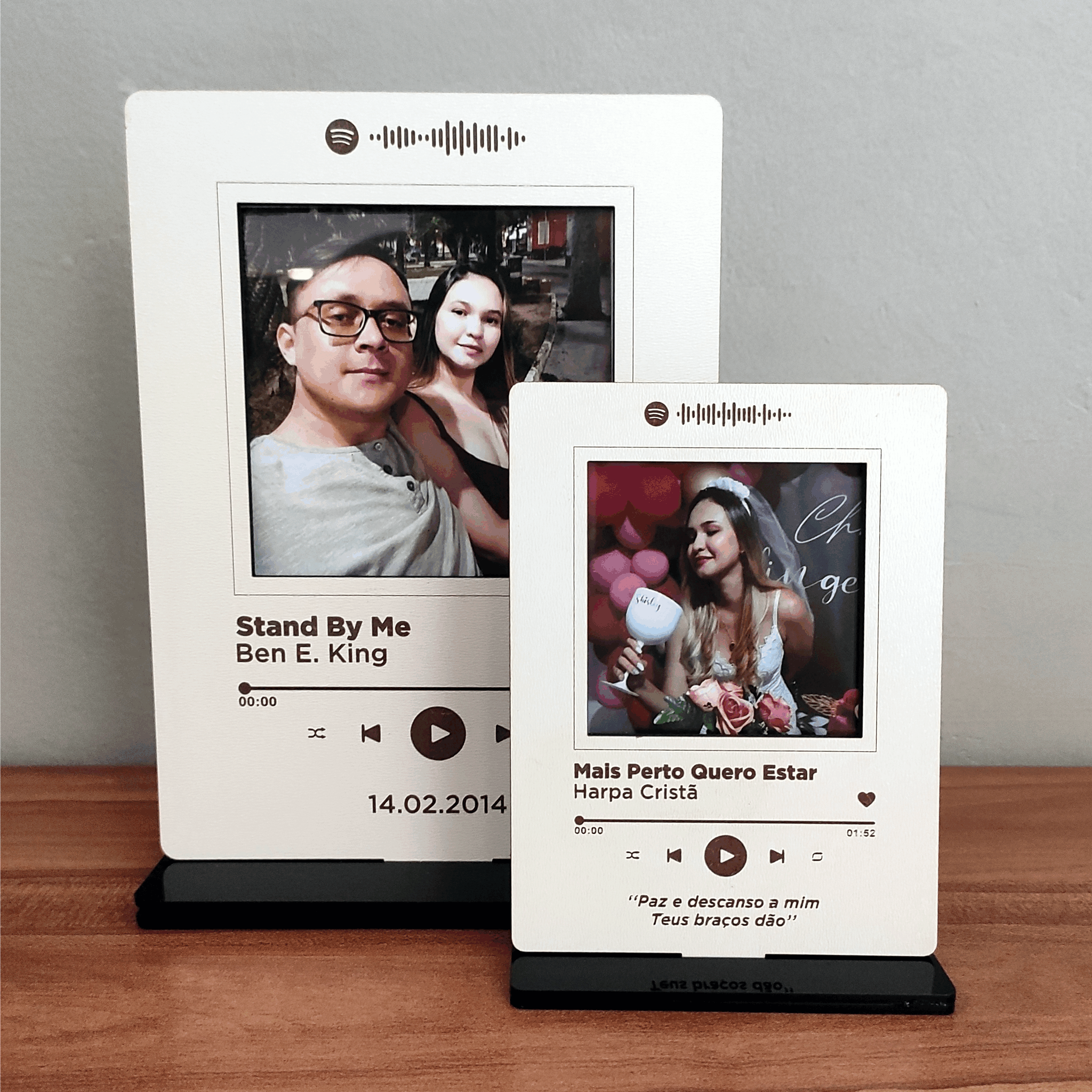 Celebre momentos especiais com nossa Placa Personalizada com Foto e Música. Feita com bordas arredondadas e disponível em dois tamanhos, esta placa é uma maneira única de capturar memórias preciosas. Personalize com até 3 fotos, o título e o artista de uma música especial, uma mensagem personalizada e o código do Spotify para reproduzir a música. Com a base em acrílico, esta placa é perfeita para exibir em qualquer ambiente. Experimente nossa ferramenta de personalização para visualizar sua placa antes de fazer o seu pedido.