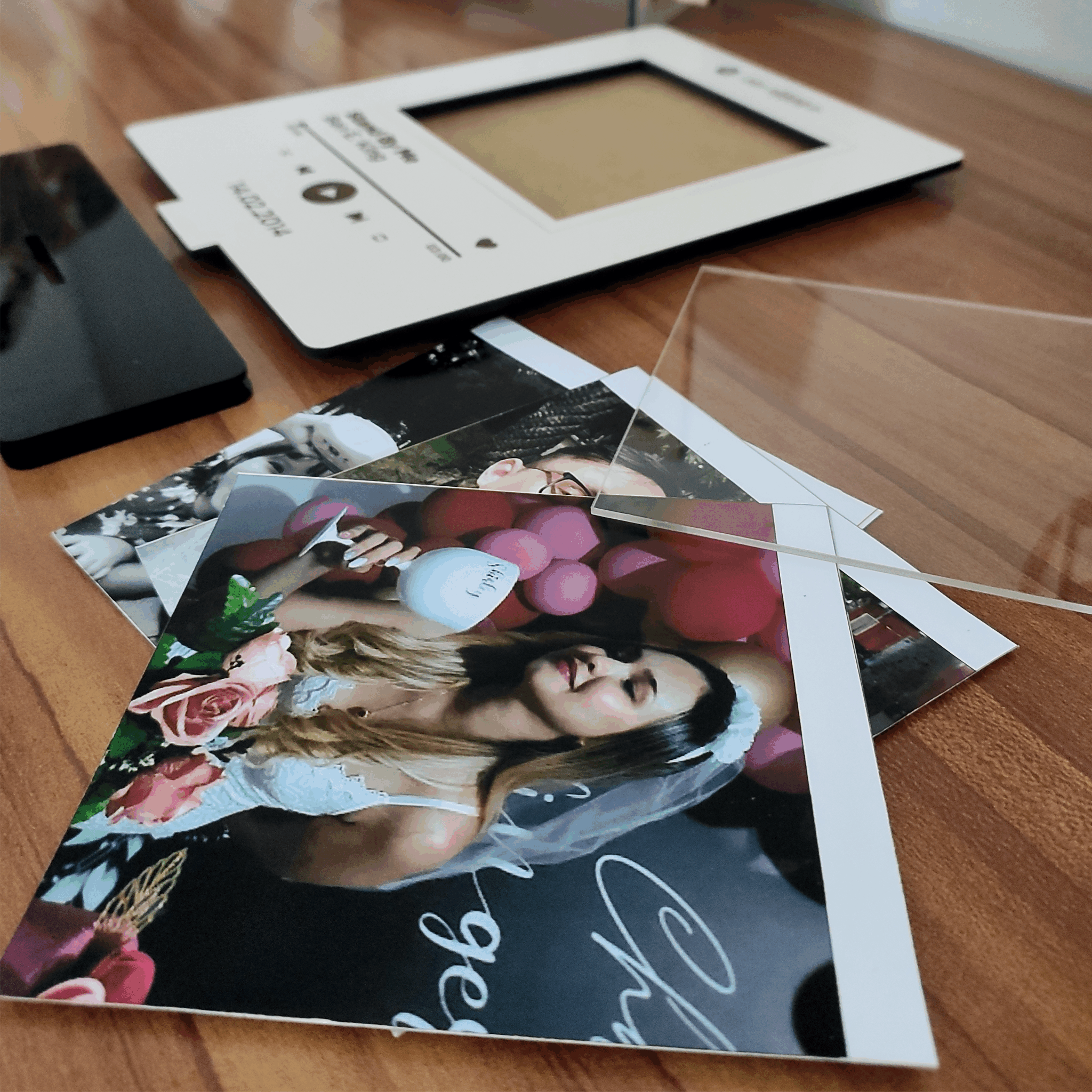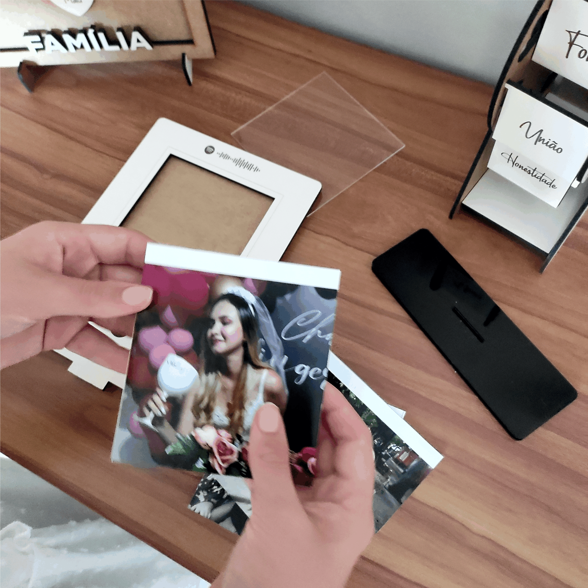 - Material: MDF de alta qualidade, acrílico para proteção da foto e base