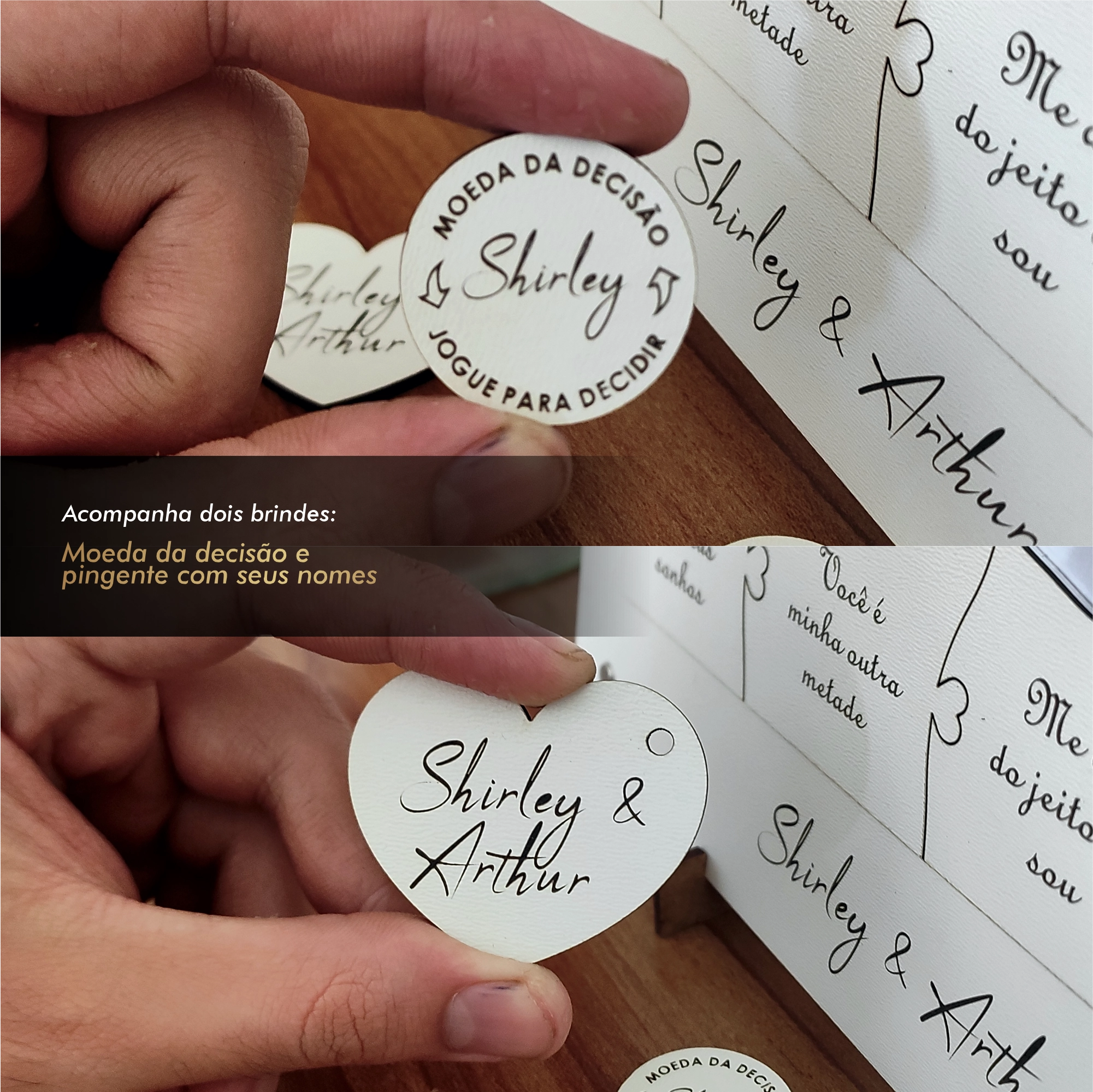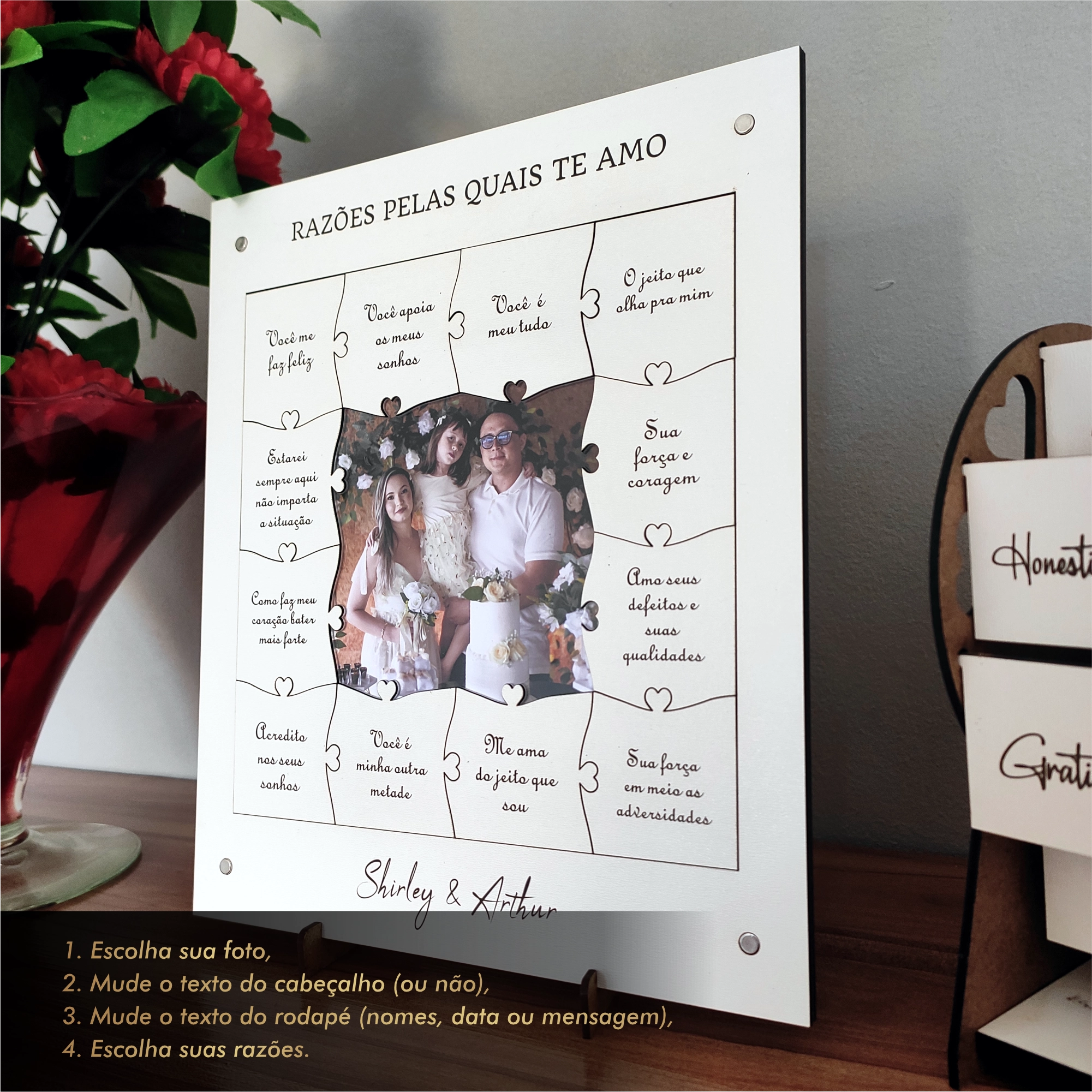 - 🧩 Design simbólico: peças em formato puzzle que representam união e amor.