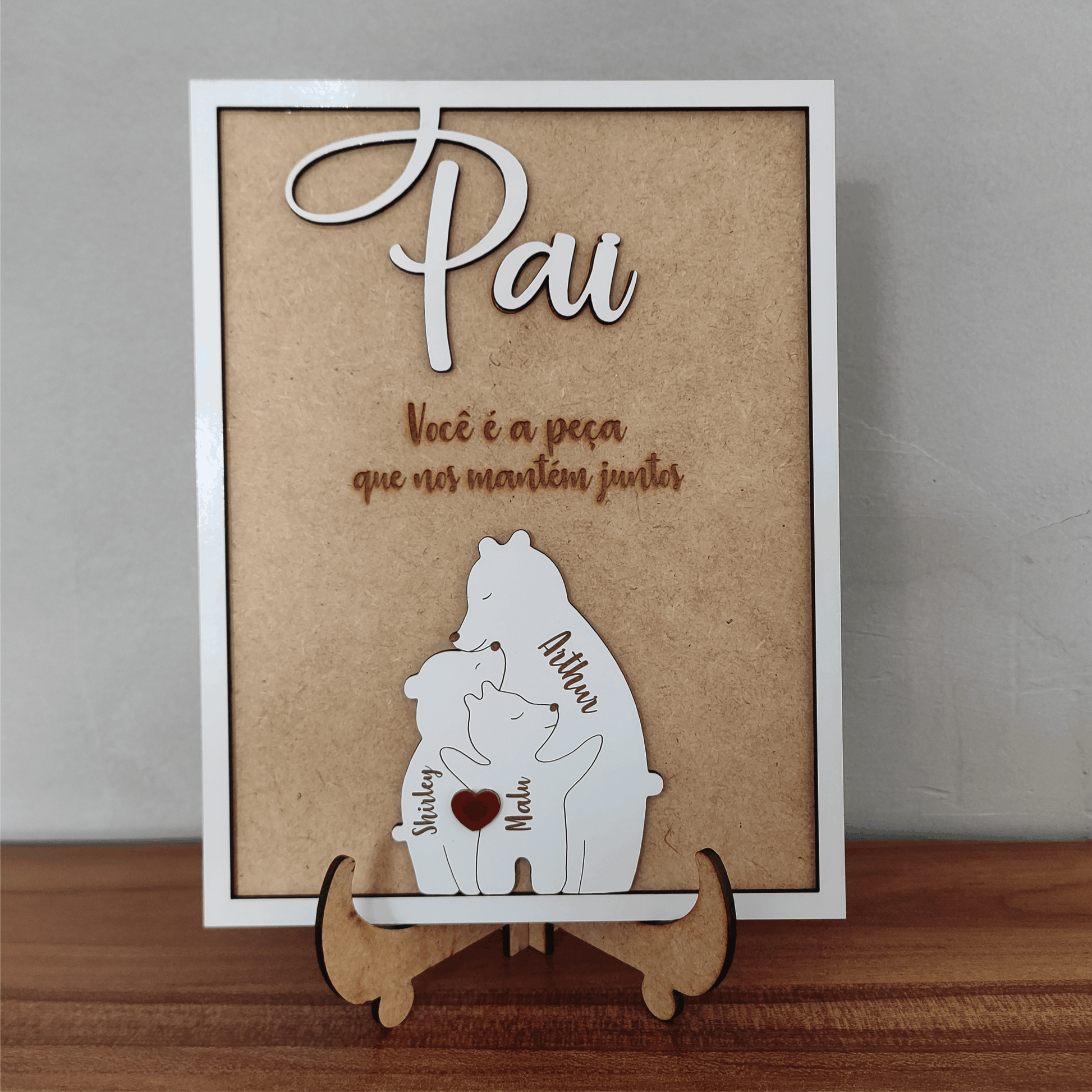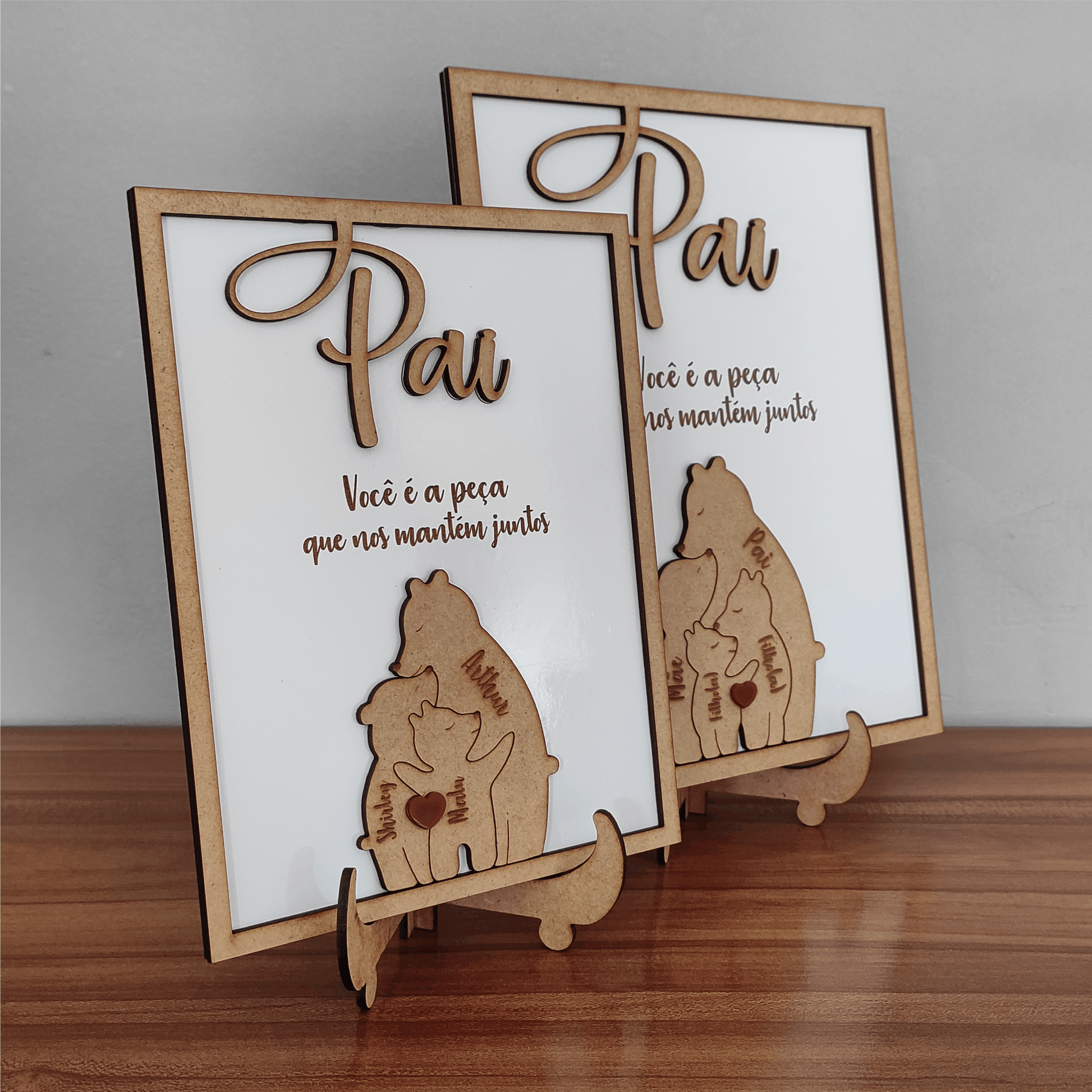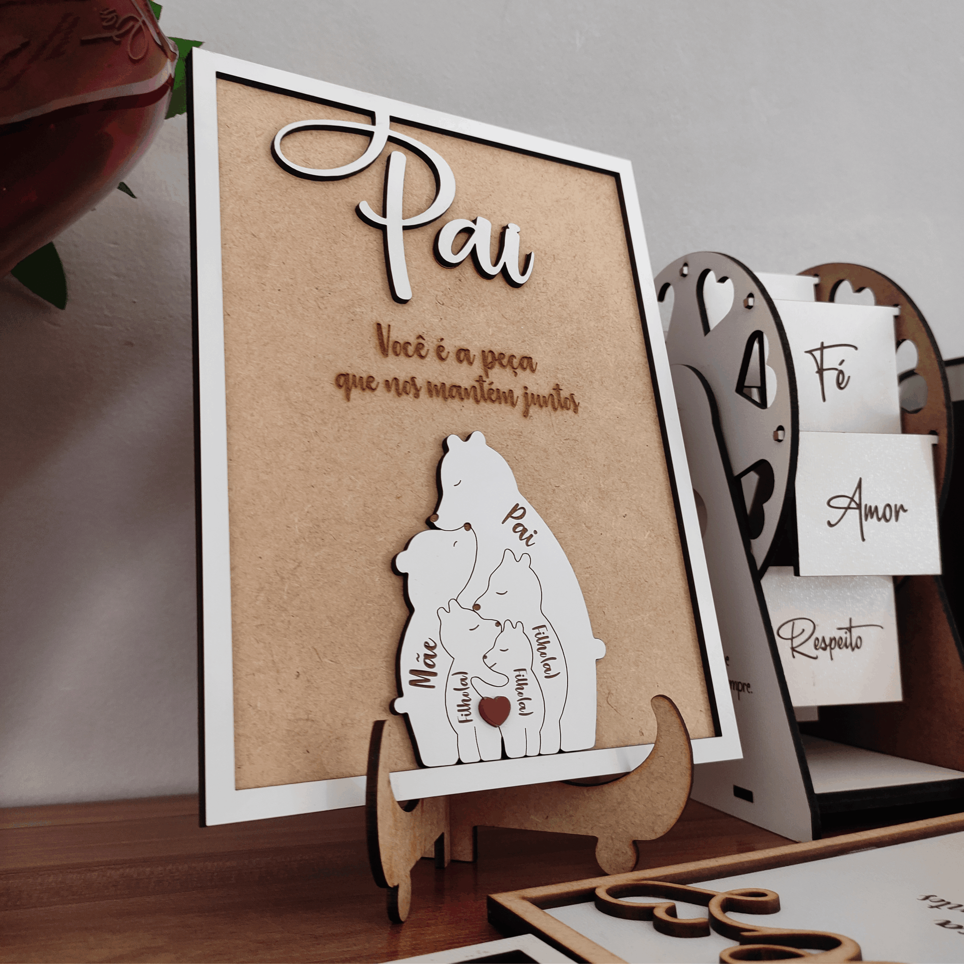 1x Quadro com mensagem e ursinhos + Base em MDF.