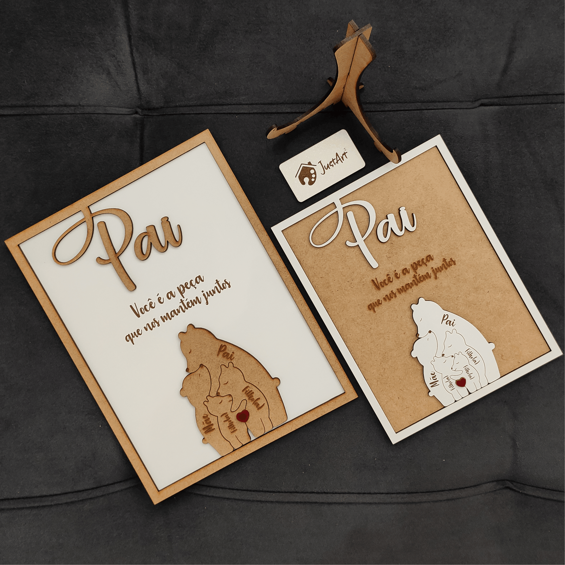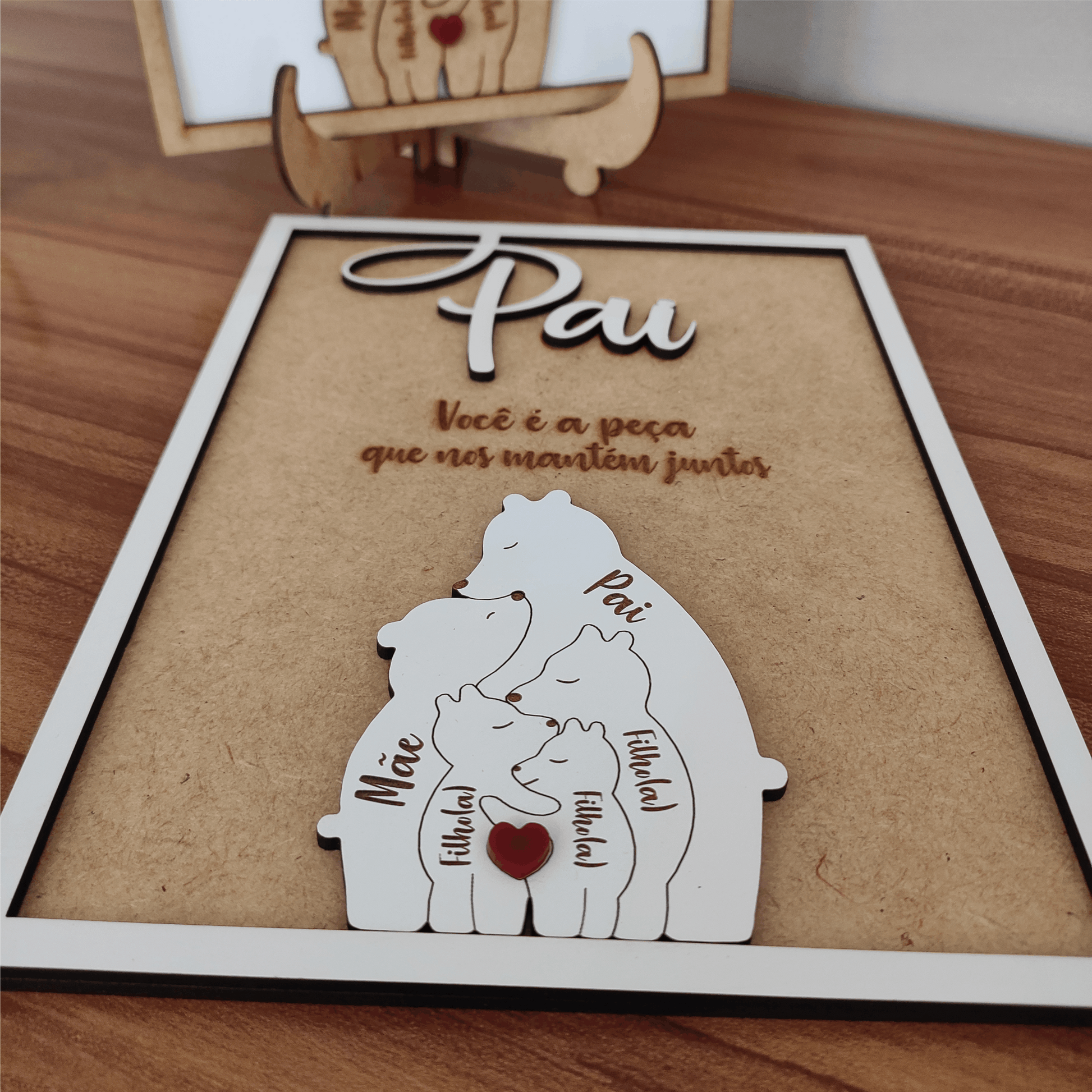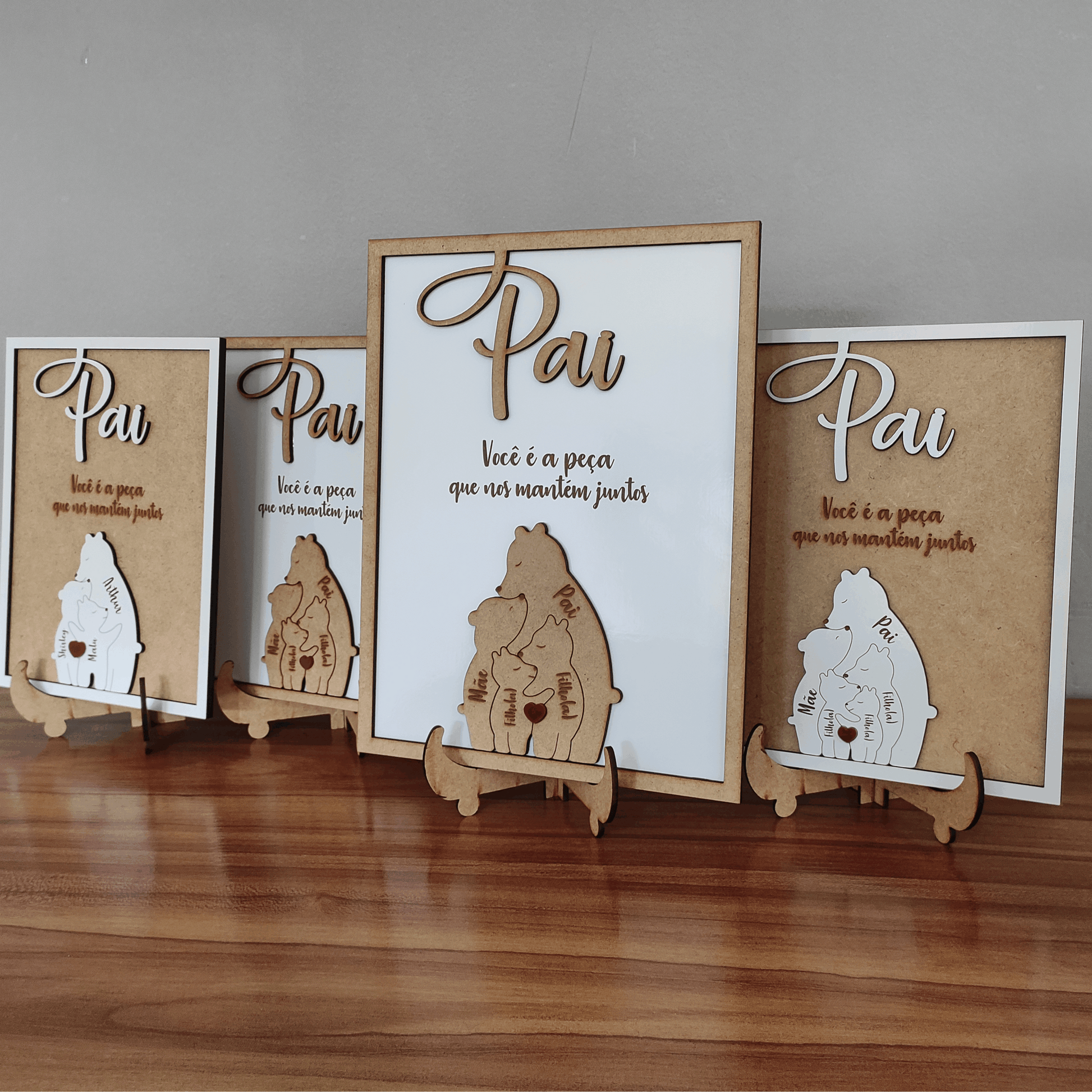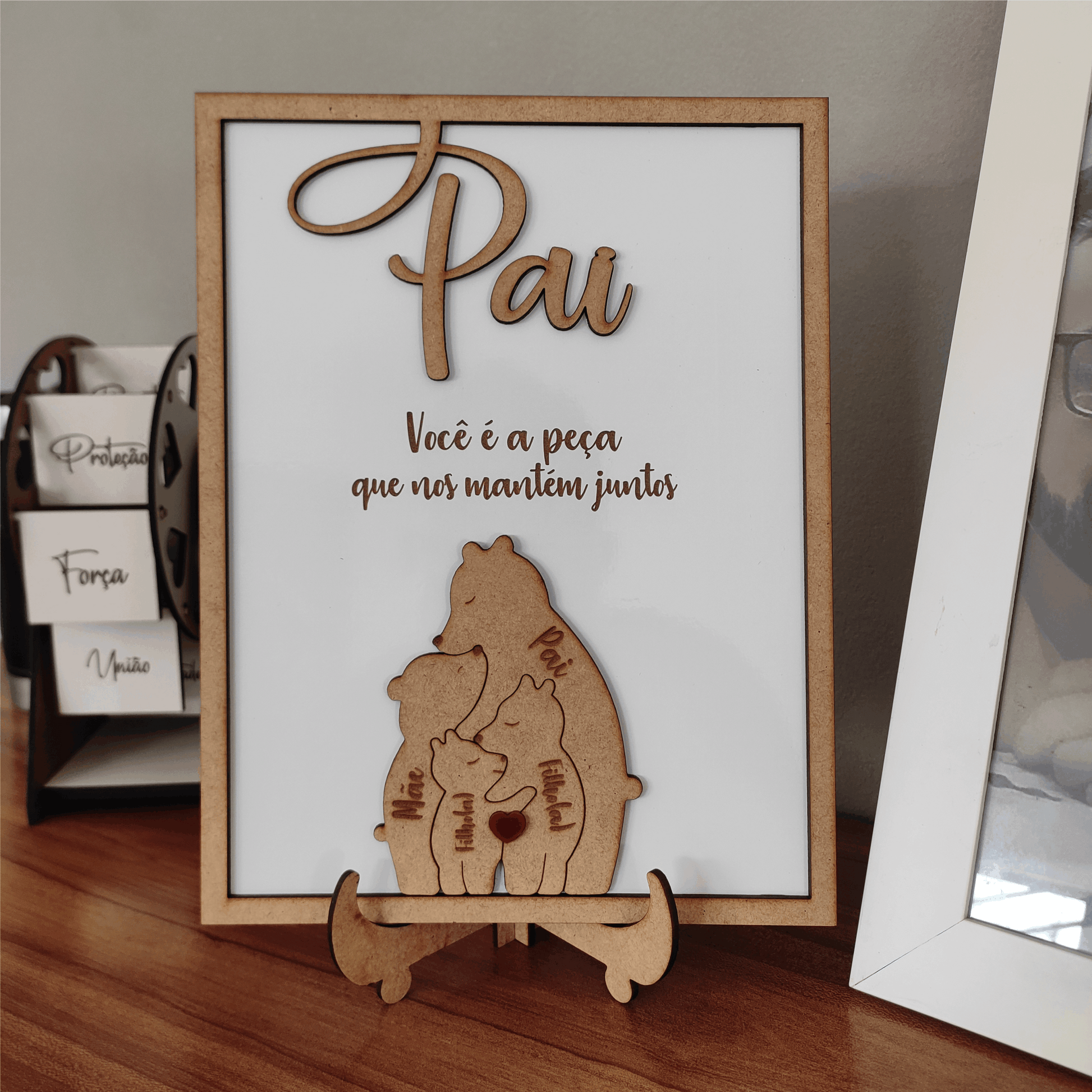 1x Quadro com mensagem e ursinhos + Base em MDF.